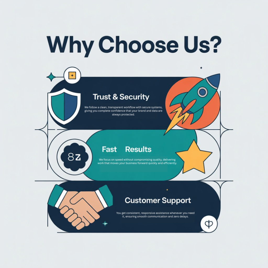 Most creators talk big and deliver average work — we don’t. We focus on strategy first, execution second. Every reel, post, design, or campaign is built with a purpose: reach more people, retain them longer, and convert them faster. We don’t waste your time with pretty visuals that do nothing for your business. Our work is clean, fast, data-backed, and designed to get real results, not likes that look good but achieve nothing.